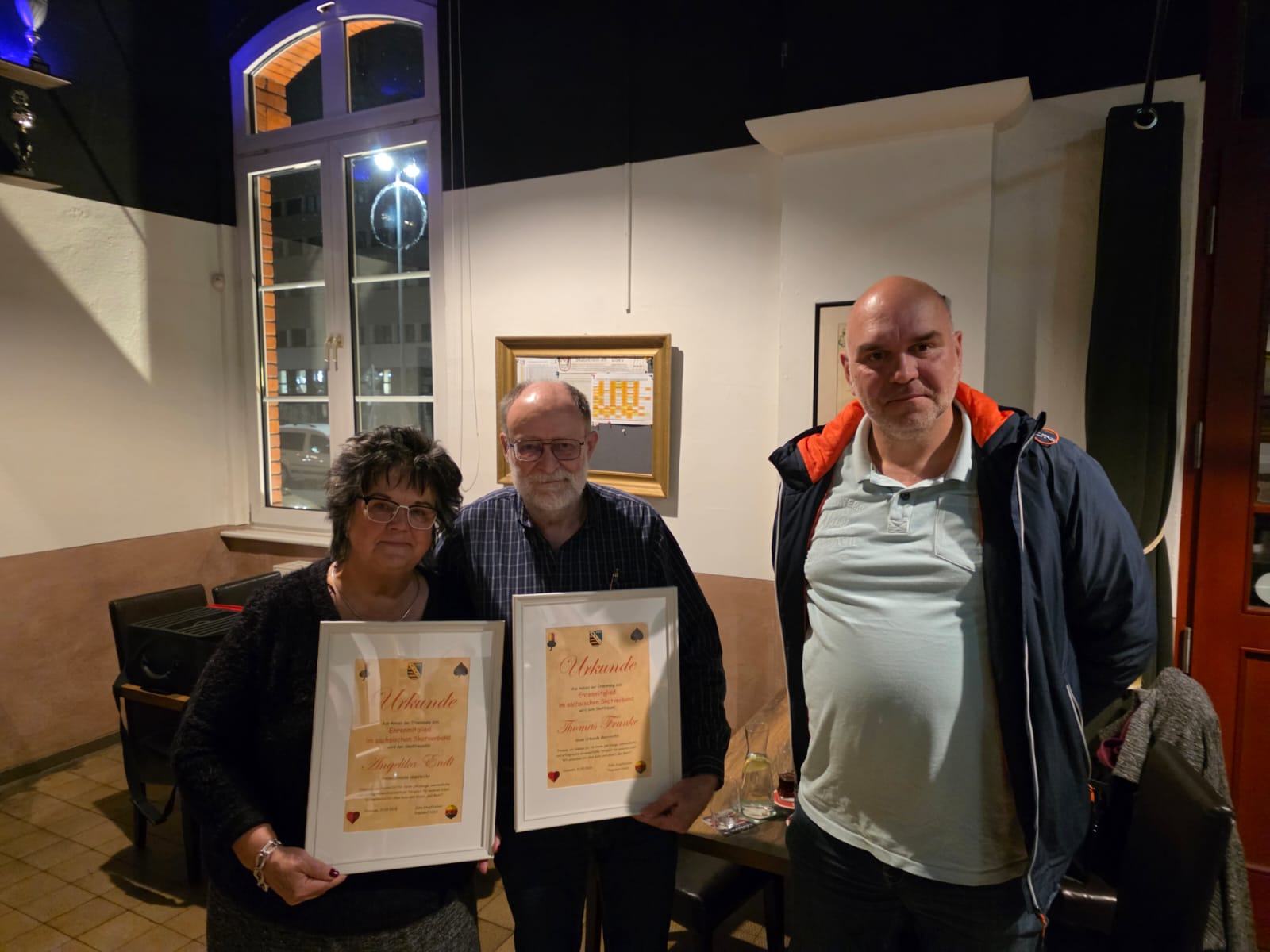 Kurz vor dem Start ihrer großen Reise hat es sich unser Präsident John Stopfkuchen nicht nehmen lassen und hat Angelika Endt und Thomas Franke bei ihrem Vereinsabend besucht. Dort wurde den beiden noch einmal offiziell die Urkunde über die Ehrenmitgliedschaft im SSkV übergeben. Nach den vielen Jahren als Schatzmeister und Präsidentin unseres Landesverbandes natürlich mehr als verdient. Im Namen des gesamten Präsidiums und alles Mitglieder bedanken wir uns noch einmal für Euren außergewöhnlichen Einsatz und gratulieren herzlich.